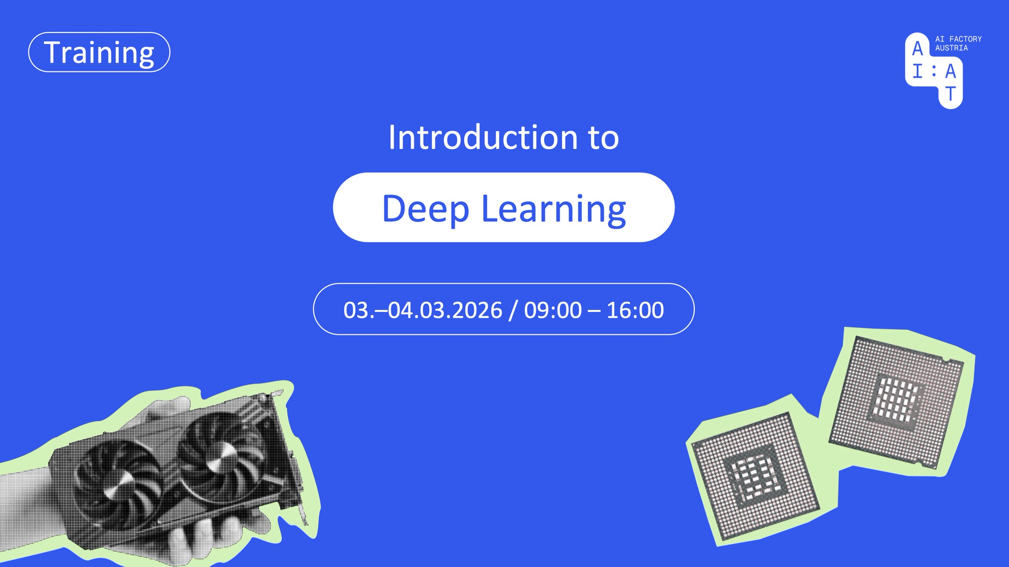 The online two-day course Introduction to Deep Learning will be organized by AI Factory Austria AI:AT and Austrian Scientific Computing (ASC) from 3 to 4 March 2026. This course covers the essentials of neural networks, from artificial neural networks (ANNs) to convolutional neural networks (C...