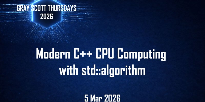 This week’s Gray Scott Thursdays webinar will explore efficient CPU computing in C++ using the std::algorithm library, introduced with the C++17 standard.