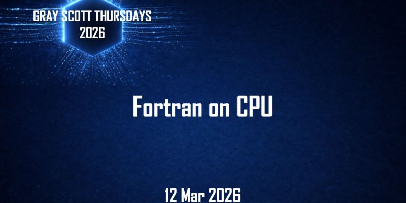 A new session on modern Fortran programming for CPU architectures will be part of the Gray Scott Thursdays webinar series, scheduled for 12 March 2026.