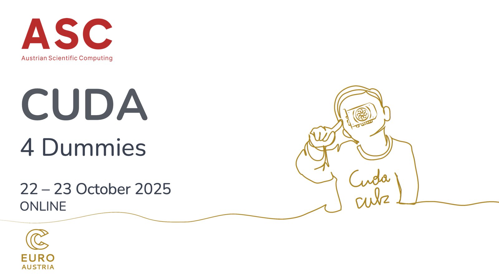 The Austrian Scientific Computing (ASC) research center, in collaboration with NCC Austria, is organizing a two-day online course on CUDA programming for NVIDIA GPUs. The training will take place from 22 to 23 October 2025, and will be conducted via Zoom. It will feature lectures, demonstrations, and hands-on labs using the VSC-5 system.