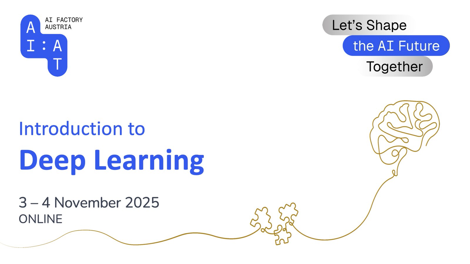 Interested in exploring deep learning but lacking experience? Join the Introduction to Deep Learning course hosted by AI:AT - AI Factory Austria and Austrian Scientific Computing (ASC, TU Wien). It's an online event via Zoom on 3 and 4 November 2025.