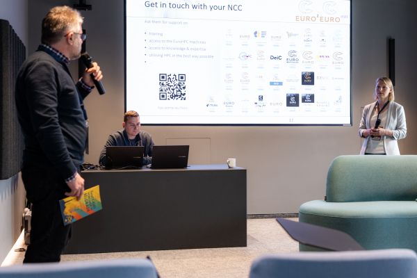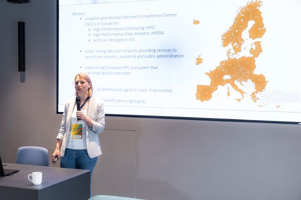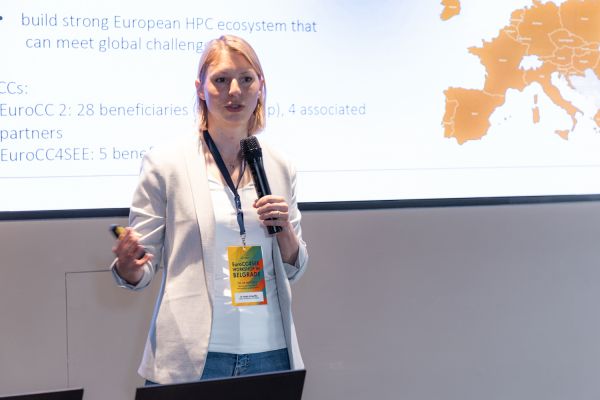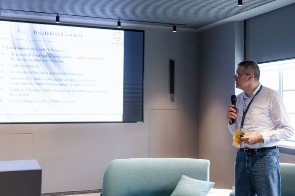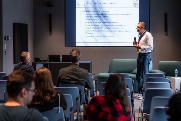 The session was opened by Nadja Schauffler from the High-Performance Computing Center Stuttgart, who provided a high-level overview of the EuroCC framework. Her presentation outlined the initiative’s goals in building national competence centers (NCCs), fostering digital transformation, and supporting the uptake of high-performance computing (HPC), artificial intelligence, and high-performance data analytics across Europe. Building on this foundation, the workshop continued with a series of country-focused presentations showcasing how EuroCC efforts are being implemented locally. Emanouil Atanassov from the Institute of Information and Communication Technologies BAS presented Bulgaria’s progress, emphasizing successful collaboration models between academia and industry. His talk highlighted how structured HPC support mechanisms can bridge the gap between research and application in business environments.